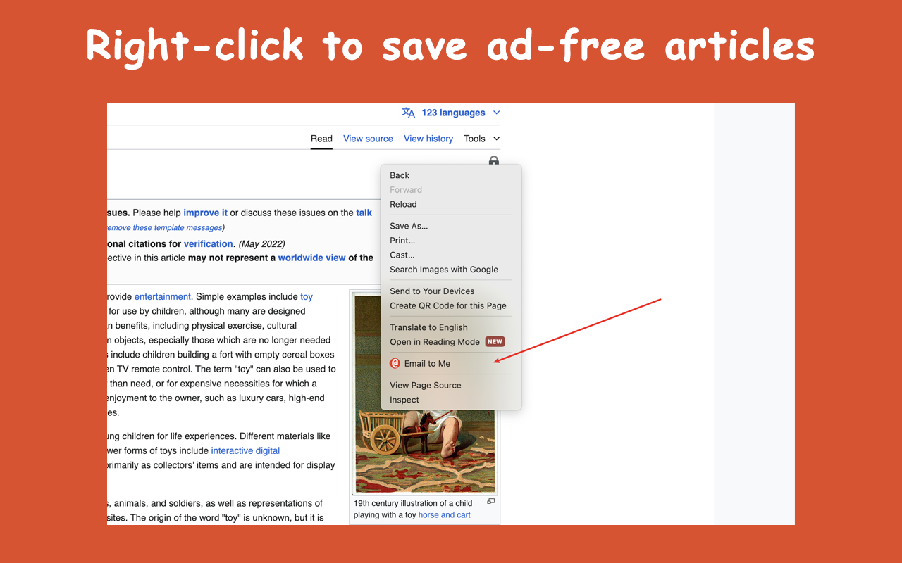 If you’ve been looking for a simple way to clear your tabs and actually read what you save, you can find it here: Email to Me on the Chrome Web Store